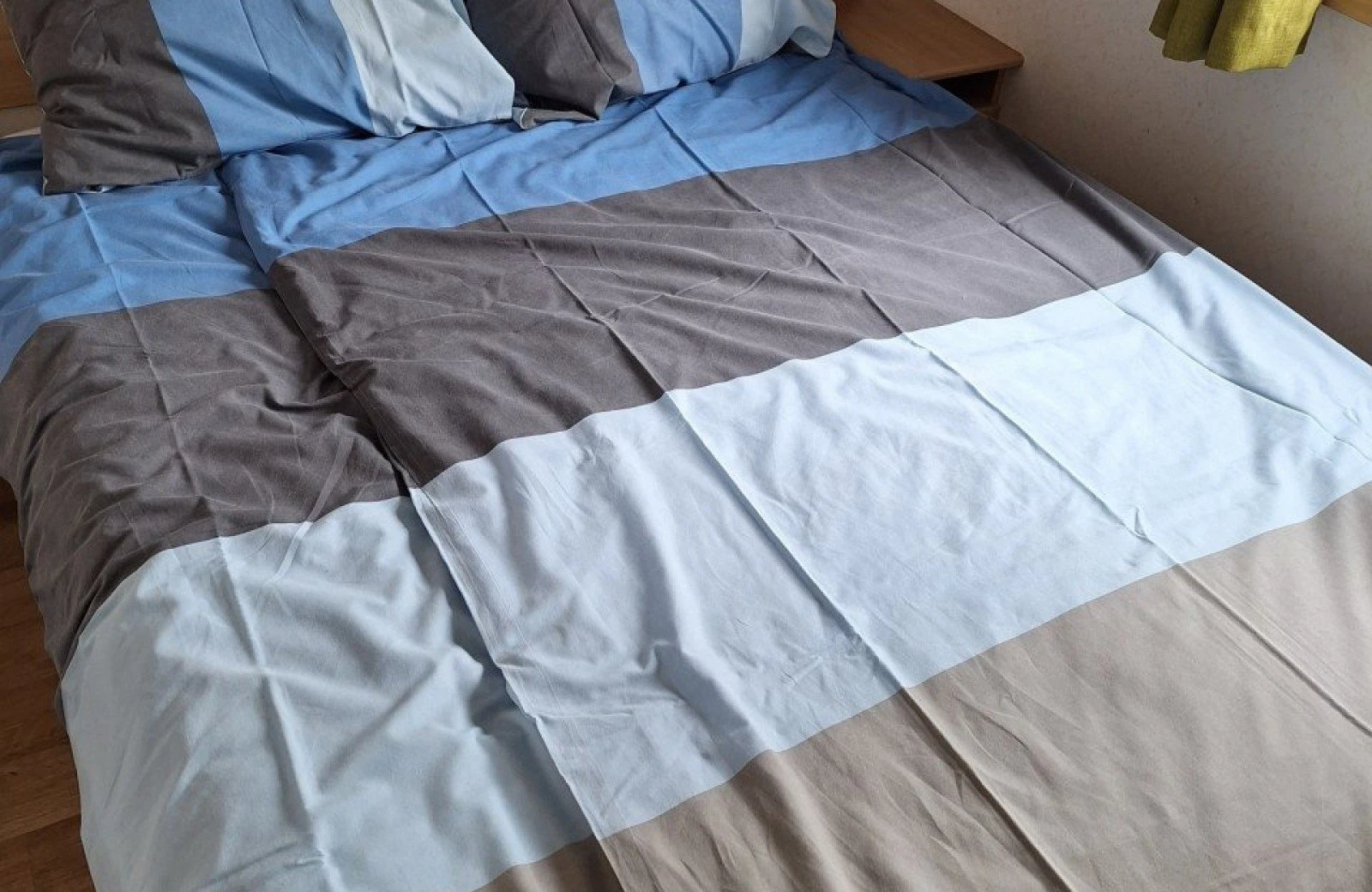 - 1 slaapkamer met tweepersoonsbed met dekbed, lakenpakket en kussens.