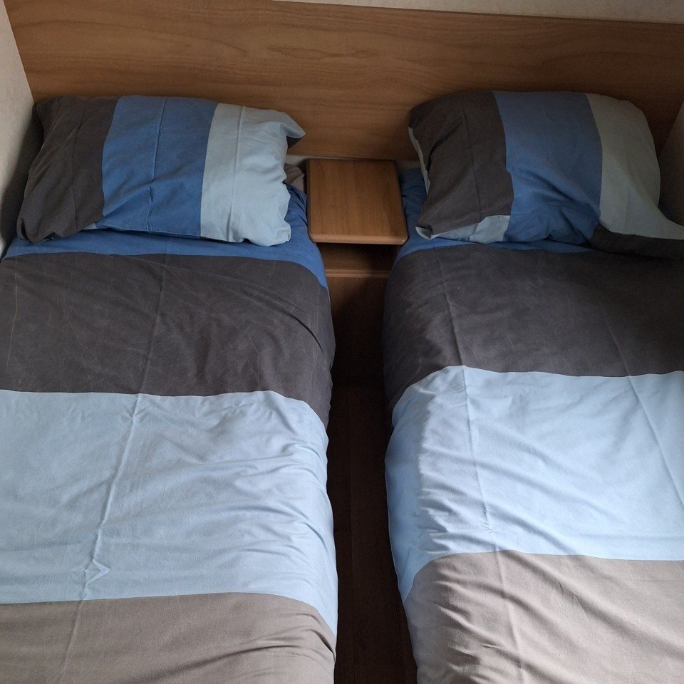 - 1 slaapkamer met 2 éénpersoonsbedden met dekbed, lakenpakket en kussens.